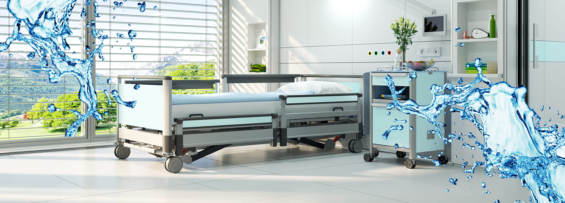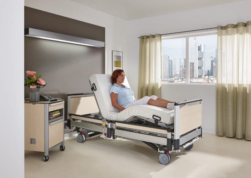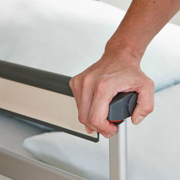 Das besondere Design der SafeFree®-Seitensicherung gibt Halt und hilft den Patienten sich selbst zu mobilisieren. Durch die 3-Stopp Strategie stoppt das Bett automatisch auf einer optimalen Mobilisationshöhe von 42 cm.
