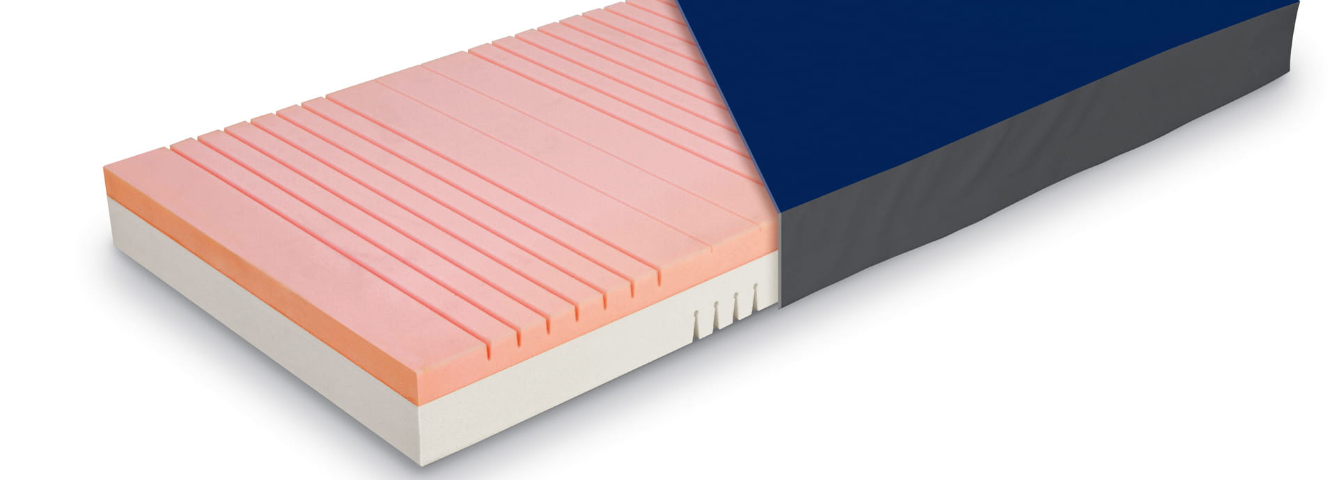 The way the mattress core is profiled helps correctly distribute pressure between the patient and the mattress. In addition to a clinical preventive effect, this affords greater comfort because the mattress adapts to the shape of the patient’s body. Due to the profiling the mattress better reacts to the positioning of the bed.