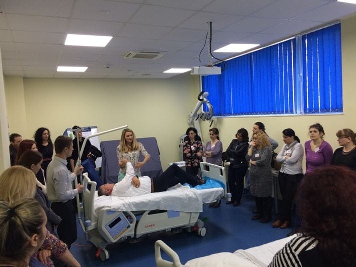 On April 7, LINET product training specialist Tereza Halfarová and Alexander Sirin, medical supervisor and rescuer, organized a moving and handling workshop in Bucharest, Romania. The event was held at the LifeSIM Medical Simulation Center, one of the best private centers of its kind in the CEE region.
