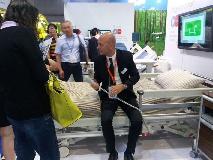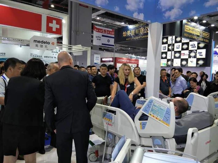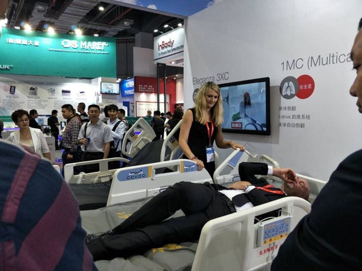 “Our state-of-the-art Multicare bed for ICUs and the powered air surface Virtuoso mattress attracted a lot of attention. The change from the one-child to two-child policy comes with a growing demand for maternity hospitals, which also care for the new-born. Our AVE bed was very well received at the CMEF,” said Christian Wurm. “With the great support of our trainer Tereza Halfarová, we presented e.g. how easy mobilisation is with the lateral tilt and the MobiLift. Chinese customers are hungry to learn and all our presentations attracted a lot of customers. They stopped, watched, asked questions, tried for themselves, took pictures and videos – it was crowded and there was great interaction at the LINET stand with our end-users,” he added.