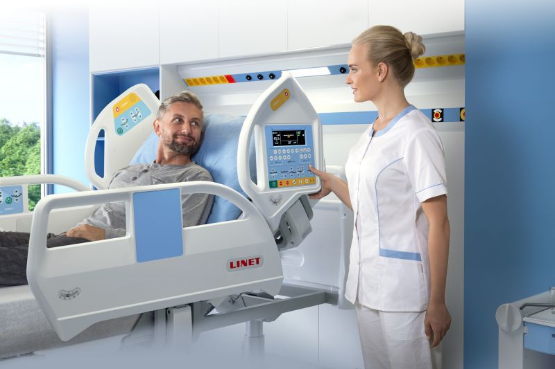 The nurse will carry out routine nursing procedures ergonomically and effortlessly with new LINET bed Eleganza 5.
