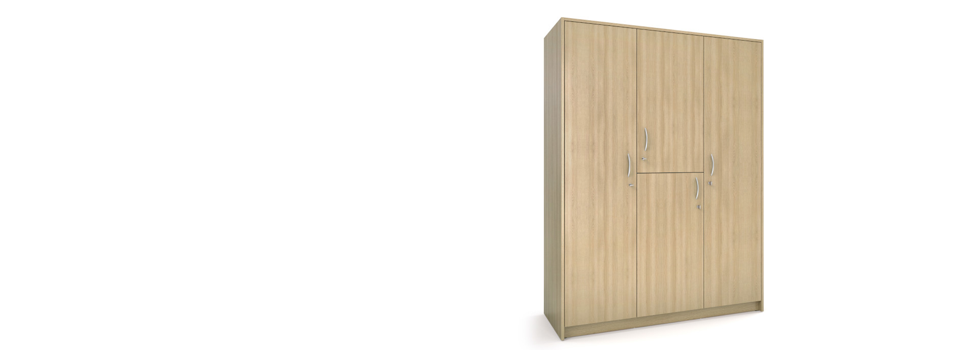 Two-person wardrobe with 4 doors, clothes rail and shelves Thanks to the 4 doors with ergonomic 128 mm segment arc handles, the resident can easily access all areas of the wardrobe. The integrated drilled soft-close reduces the noise level when closing the doors. The wardrobe is available with 1 or 2 valuables compartments, which on request can also be installed at a height optimally accessible for persons in a wheelchair.