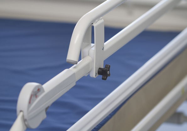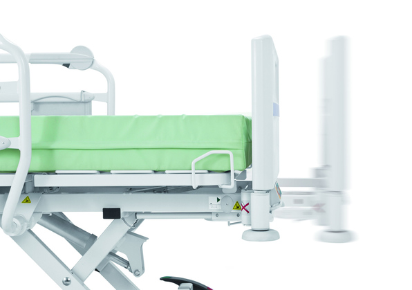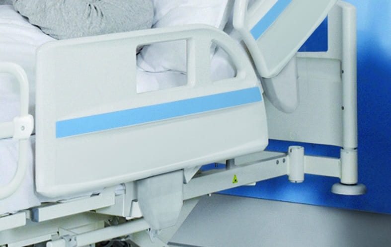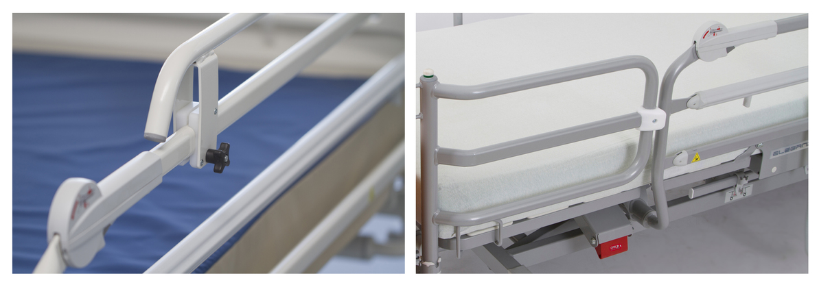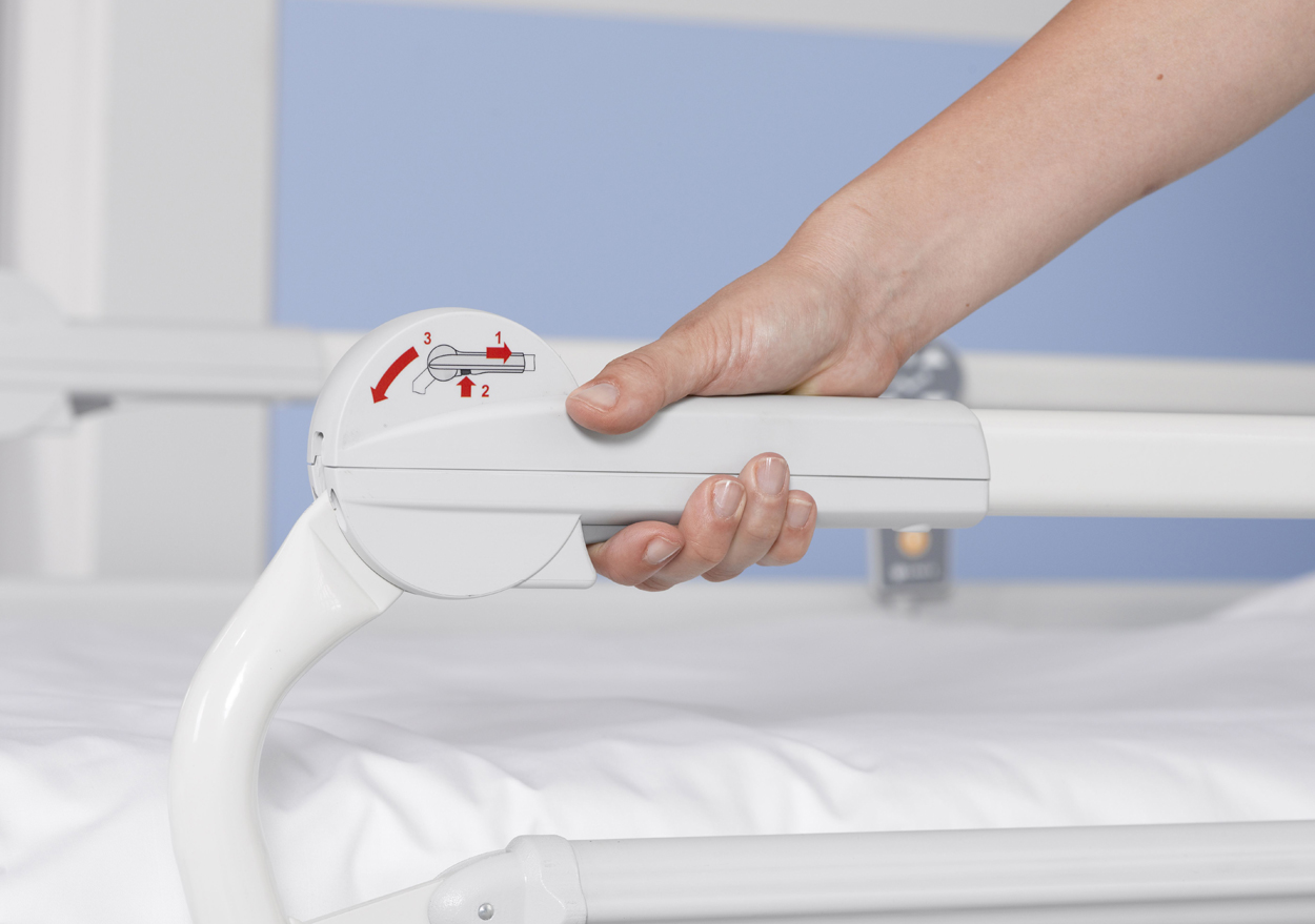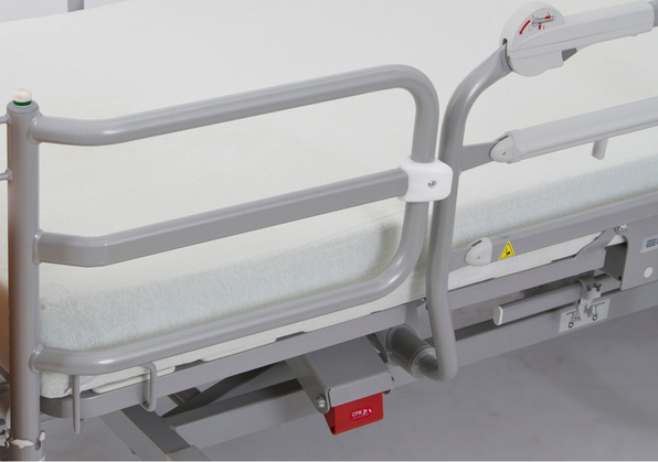 Das Bett kann mit geteilten Seitensicherungen inkl. Soft-Drop-Funktion ausgestattet werden. Die Dämpfung beim Herunterlassen erfolgt per Gasfederunterstützung. Die Sicherheit wird dabei durch ein System von zwei unabhängigen Entriegelungsbewegungen garantiert.