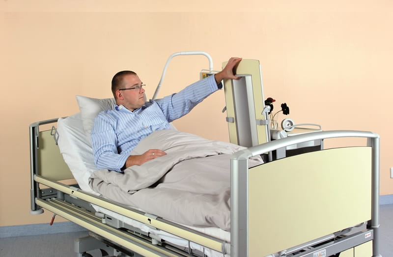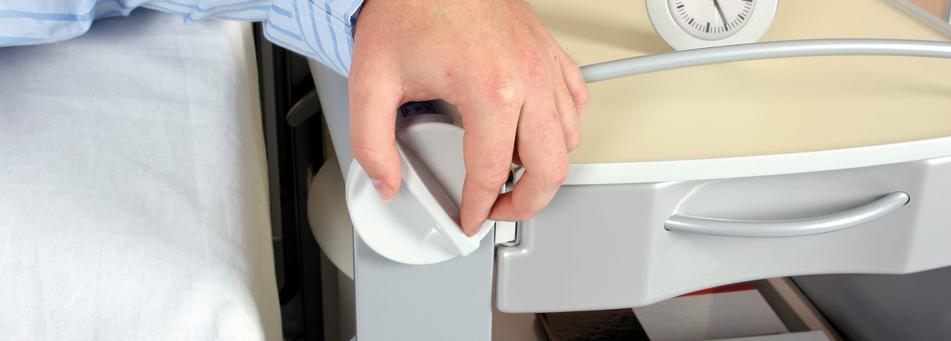 Bei der einzigartigen Konstruktion des Nachttisches eleganza mano wurden folgende Punkte besonders bedacht: Selbstständigkeit des Patienten, Infektionskontrolle und einfache Bedienung.