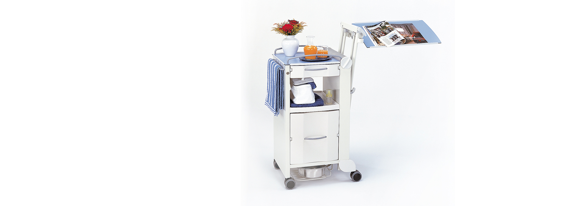 eleganza mano ist ein Nachttisch zur Selbstbedienung für Patienten mit eingeschränkter Beweglichkeit.