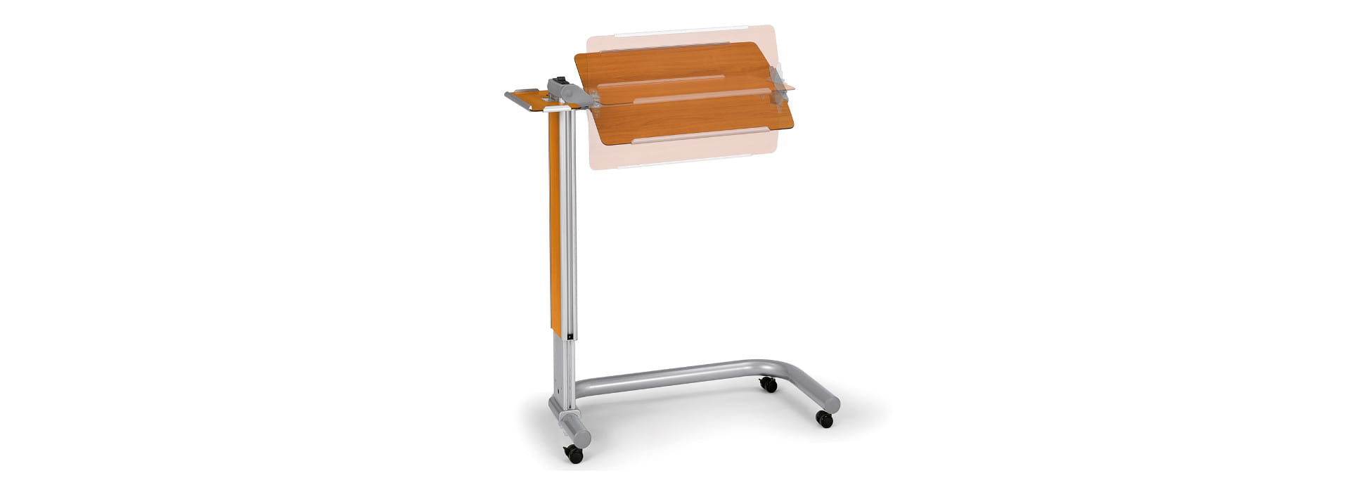 Our mobile tray offers you an easily adjustable, tiltable table surface.