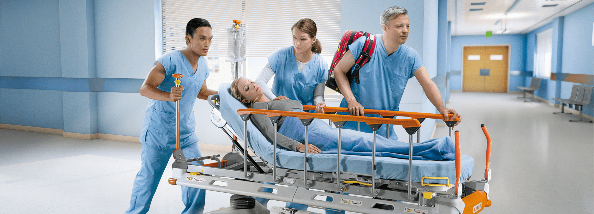 In clinical practice, integrated infusion stands on transport couches are often used as push handles. The sprint 100 offers a safer and more practical design here, where the infusion stands can be pushed in and folded away with one hand. Common infusion stands often break when used as push handles. The IV&Drive feature of the sprint 100 is particularly robust, both to minimize the risk of damage and associated follow-up costs, and to optimize procedures for staff.