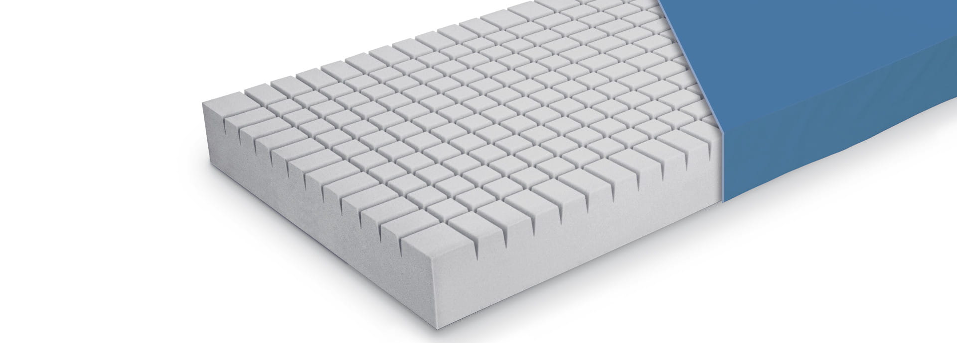 One layer Polyether foam monobloc, density 41 kg/m³ Complies with fire protection standard Crib 5